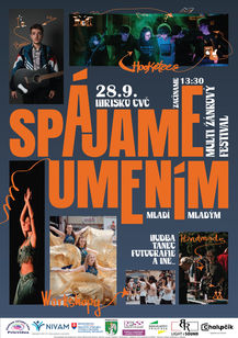 Na festivale "SPÁJAME UMENÍM" okrem vystúpení mladých spevákov, tanečníkov, kapiel, stand up-u a divadla odprezentujú svoje umenie mladí výtvarníci, fotografisti ale aj výrobca čokolády. Pripravujeme workshop tvorby grafitov, tvorivé dielne, aktivity pre deti a iné prekvapenia. Tešiť sa môžete napríklad na kapely Gotická záhrada, The Flash, The Hooketees, speváka Bedňu a veľa iných účinkujúcich.